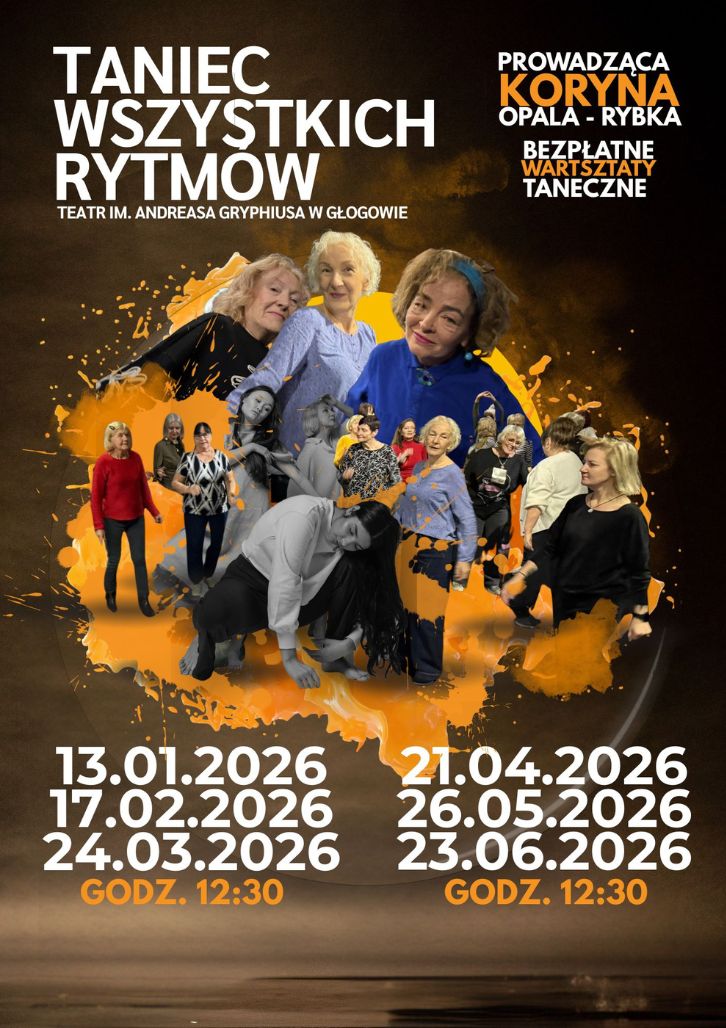 Zapraszamy na warsztaty „Taniec wszystkich rytmów”, które odbędą się w dniach: 13.01.2026 r, 17.02.2026 r, 24.03.2026 r, 21.04.2026r, 26.05.2026 r, 23.06.2026r. w Teatrze im. Andreasa Gryphiusa w Głogowie. Pod okiem Koryny Opali-Rybki odkryjesz radość tańca w różnorodnych rytmach, niezależnie od poziomu zaawansowania. To świetna okazja, by poczuć swobodę ruchu, spotkać ciekawych ludzi i spędzić dzień w pozytywnej atmosferze. Przyjdź, zatańcz i pozwól porwać się muzyce!