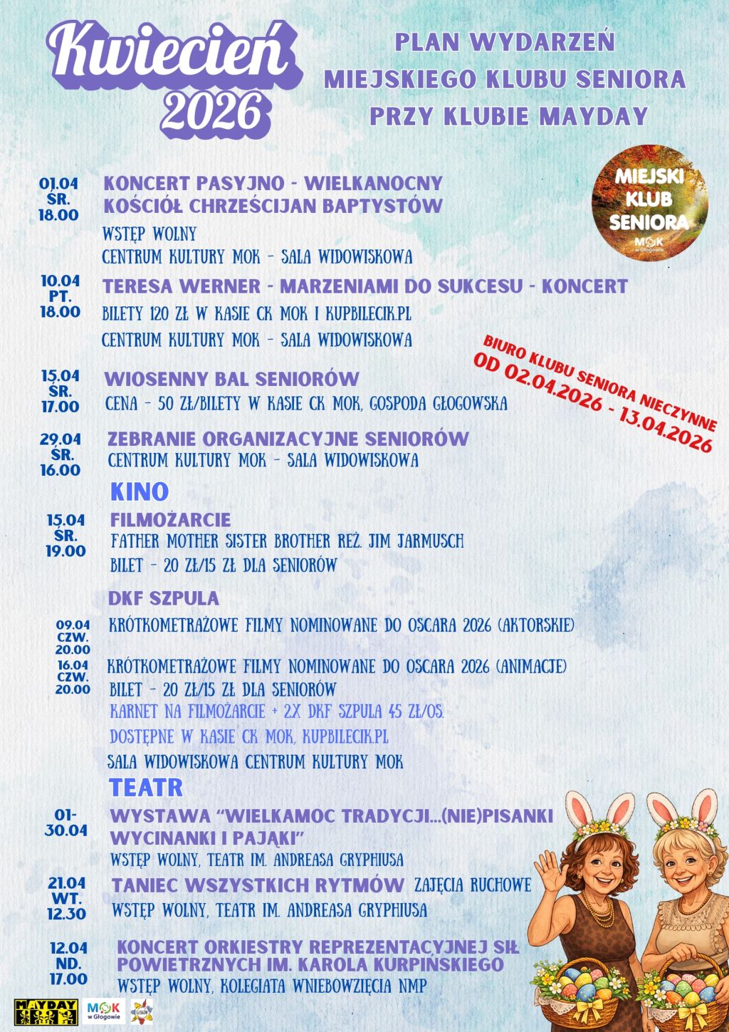 KWIECIEŃ 2026 w Miejskim Klubie Seniora przy Klubie Mayday