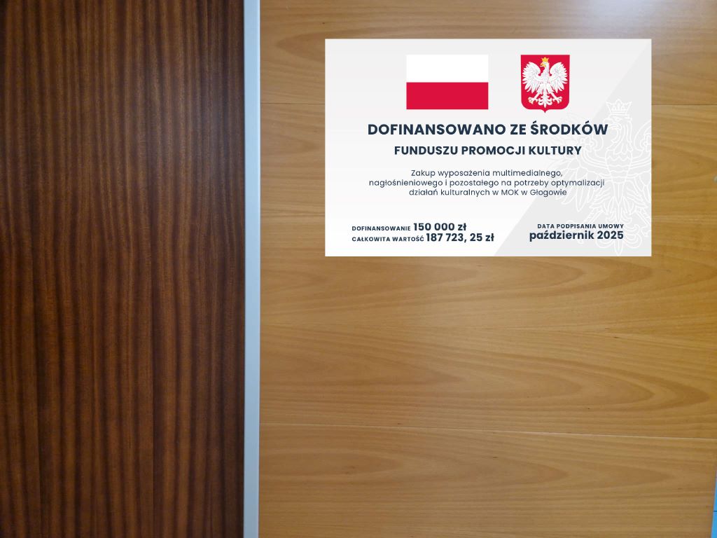 Miło nam poinformować, że Miejski Ośrodek Kultury w Głogowie otrzymał dofinansowanie ze środków pozostających w dyspozycji Ministra Kultury i Dziedzictwa Narodowego w ramach programu Infrastruktura domów kultury 2025 - Fundusz Promocji Kultury.