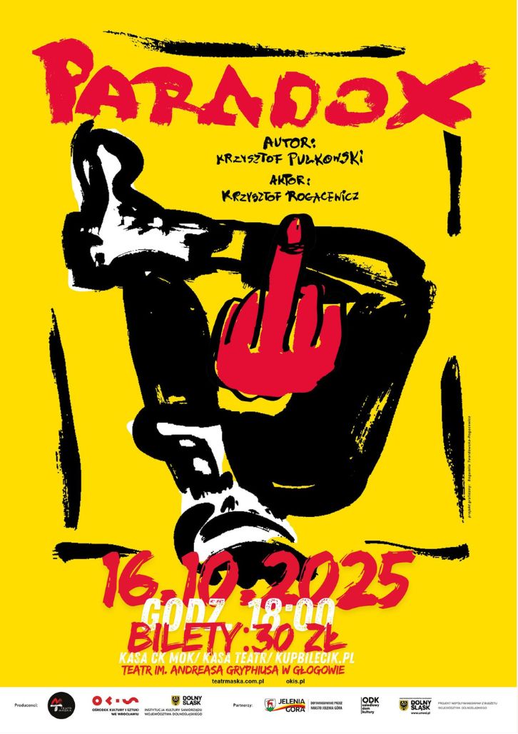 "Paradox" to spektakl przygotowany przez Teatr Maska z Jeleniej Góry, we współpracy z Ośrodkiem Kultury i Sztuki we Wrocławiu. Dramat inspirowany powieściami Joseph'a Hellera Paragraf 22 i Closing Time. Opowieść pełna napięcia i zwrotów akcji zwraca się wprost do wrażliwości widza i wiedzie jego emocje na groteskową wycieczkę szlakiem strachu o własne życie. Spektakl ukazuje bezsens wojny i wojska jako instytucji, obnaża wszelkie mechanizmy rządzące się logiką absurdu. Jej bohaterowie to zbiorowisko wariatów, fanatyków, idiotów i oportunistów, ale nade wszystko ludzi, którzy pragną jednego - przeżyć. Powaga przeplata się z groteską, a mądrość z głupotą. Wszystko wzięte jest w cudzysłów, choć kontekst prezentacji jest jak najbardziej poważny - jest nim bowiem troska o ludzkie życie.