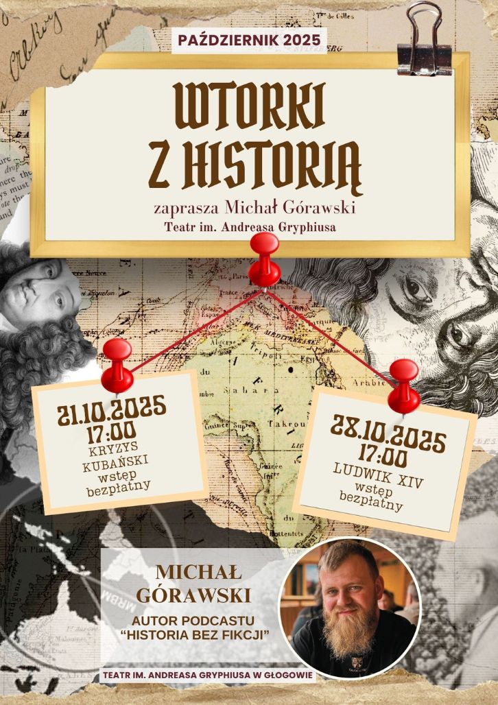 Zapraszamy na październikowy cykl spotkań „Wtorki z historią”, podczas których przeniesiemy się w różne epoki – od dramatycznych wydarzeń XX wieku po pełne przepychu czasy królewskich dworów.